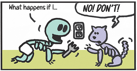 There’s also Li’l Skelton, a skeleton toddler who may either be young Skelton, or his son, or maybe a nephew. We haven’t reallly decided yet. Li’l Skelton has a pet cat named Skelekitty, who is his best friend and worst influence.